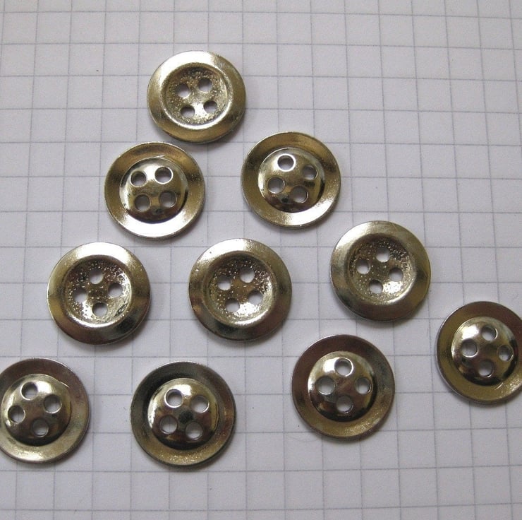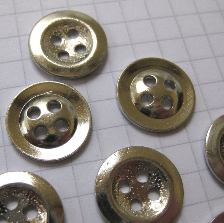 4 sewing holes, a flat rim and a centre patterned with tiny dots.