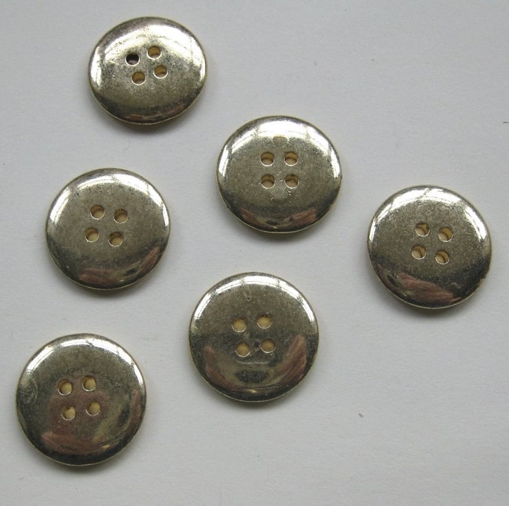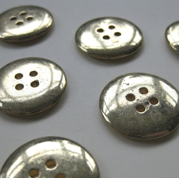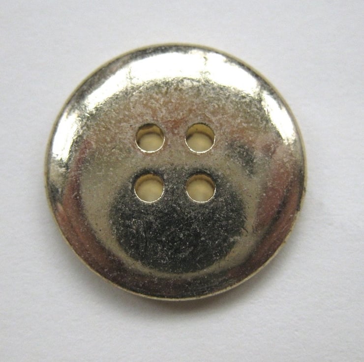 10 Smooth and shiny flat brass buttons with 4 sewing holes.
