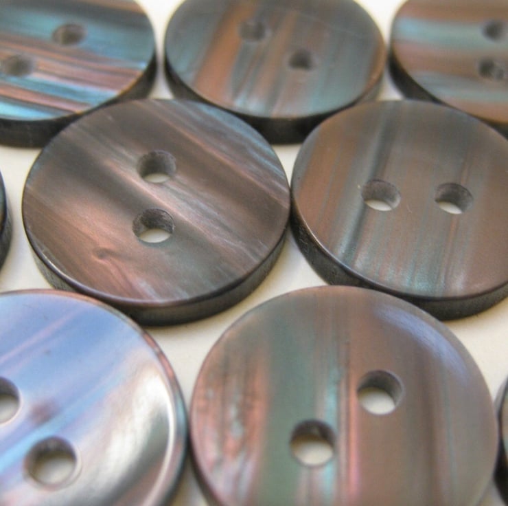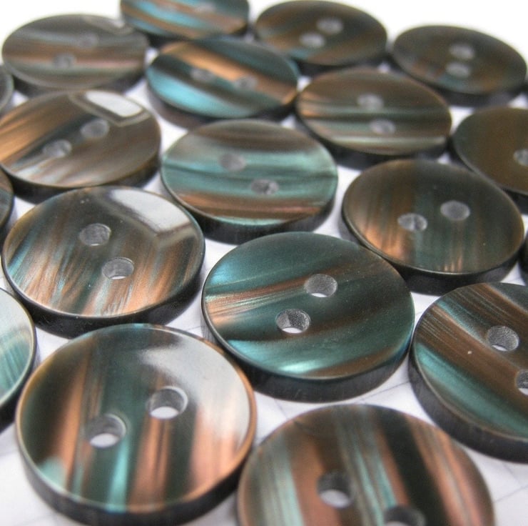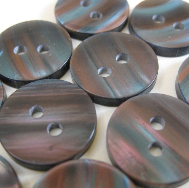 25 unusual stripy buttons. In the right light these shimmer beautifully with teal and purple stripes.