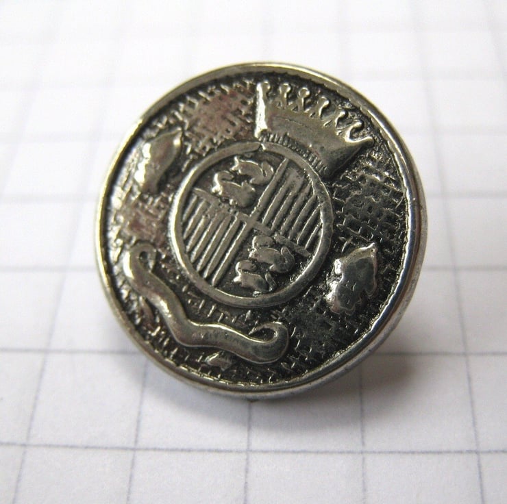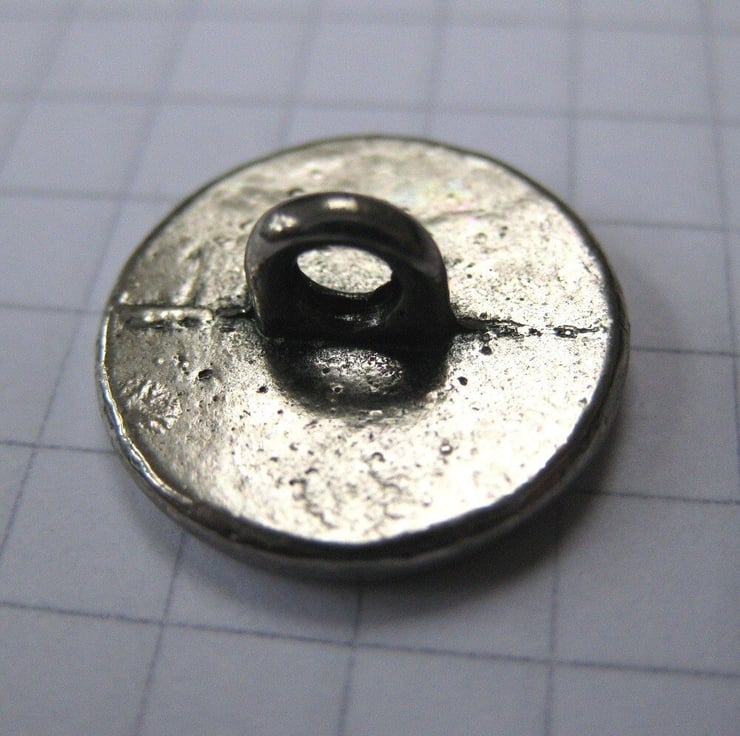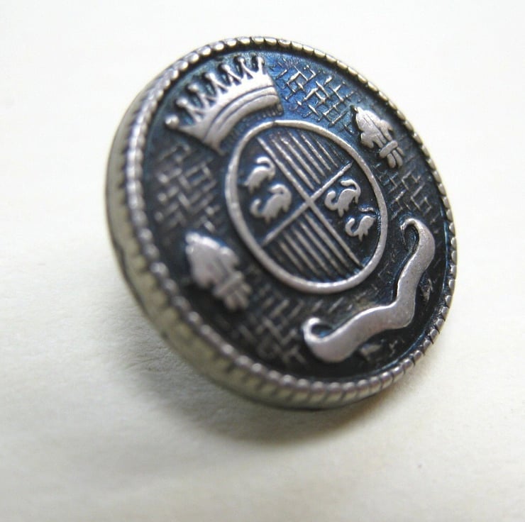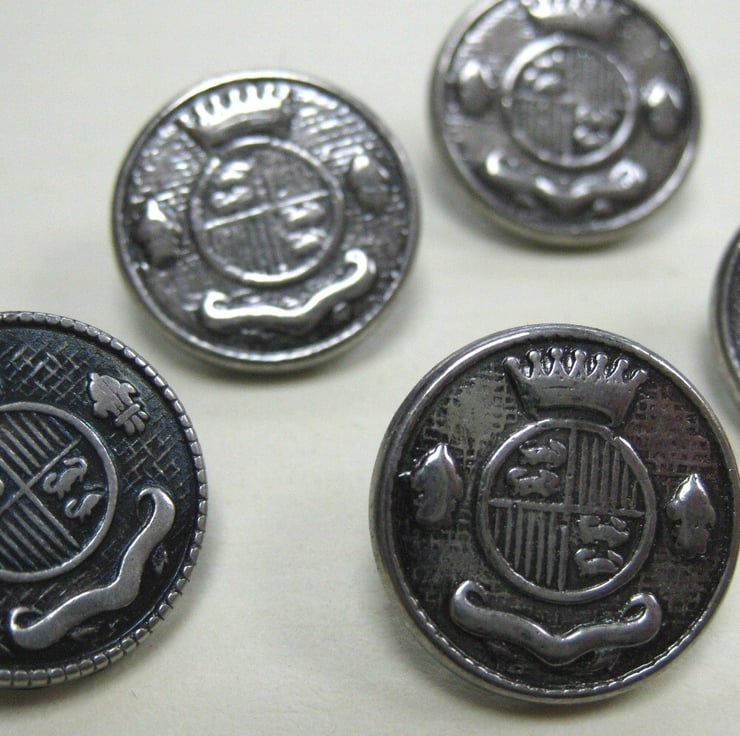 Pewter buttons with a coat of arms moulded on the face. I don't know whose arms - if you recognise them, do let me know!