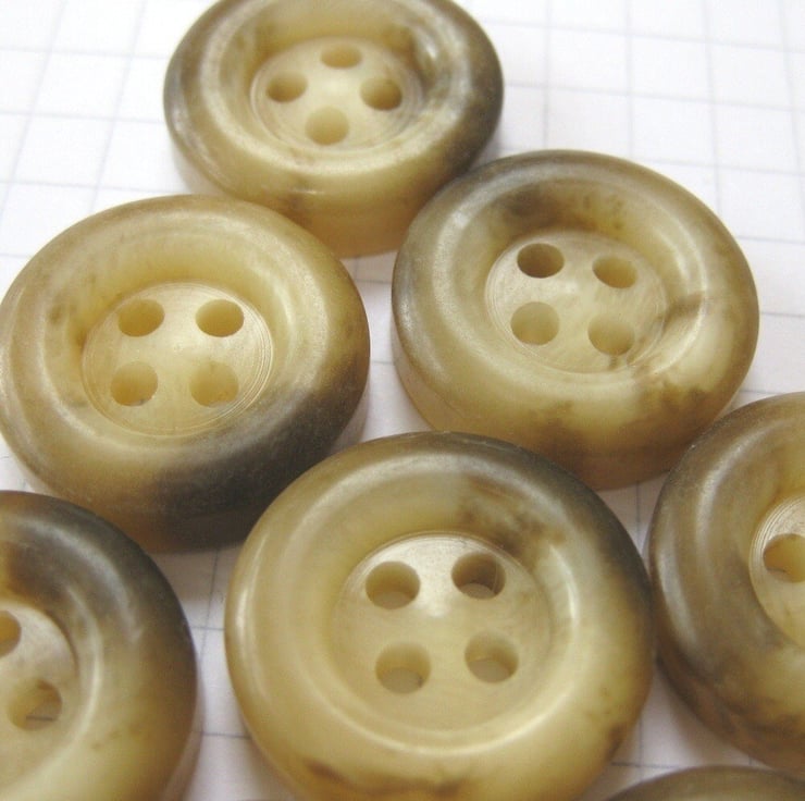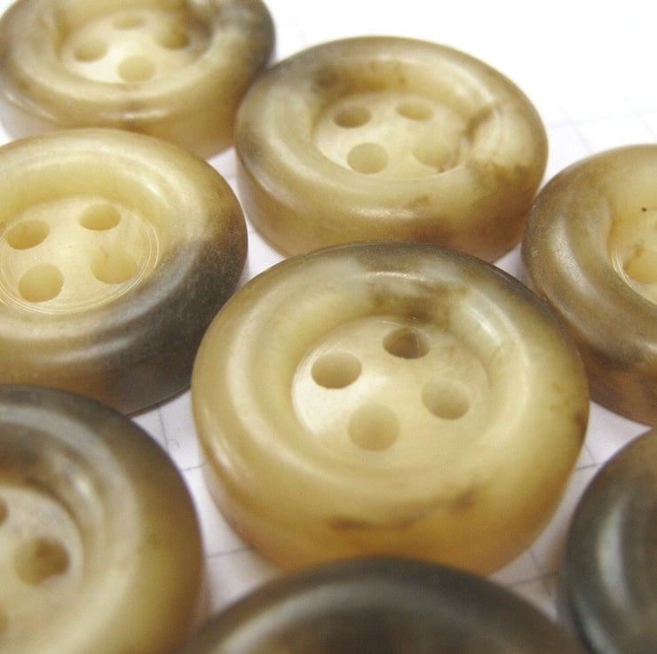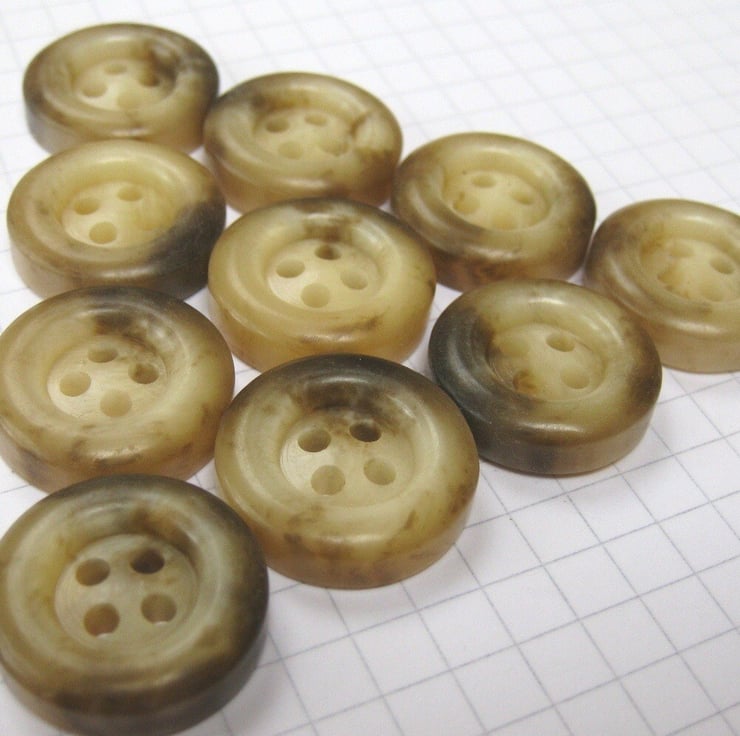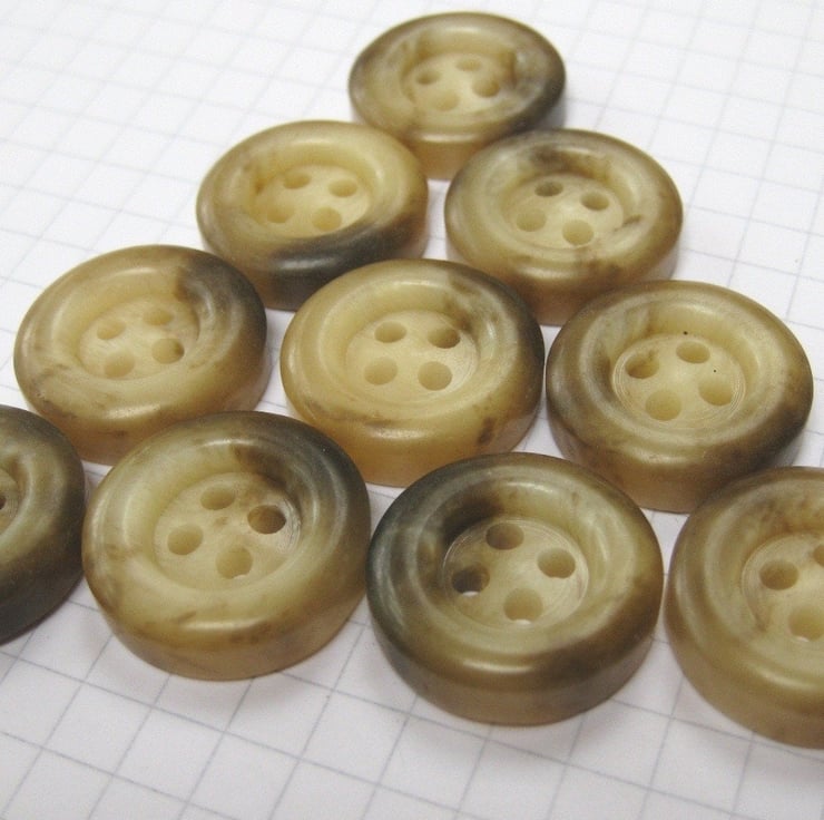 10 chunky moulded plastic buttons designed to look like turned bone. Tiny only in comparison to the others!