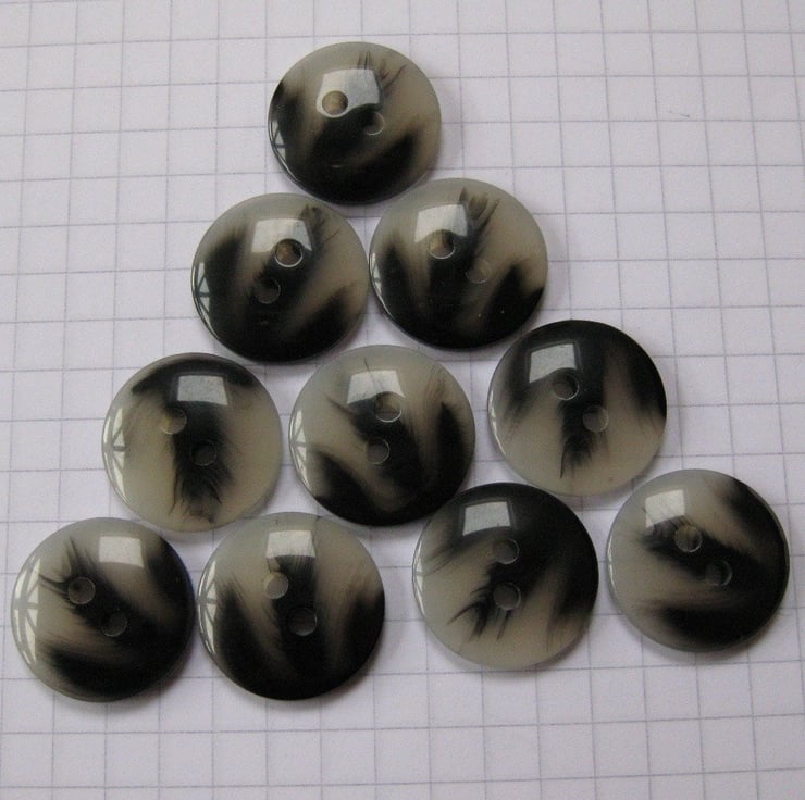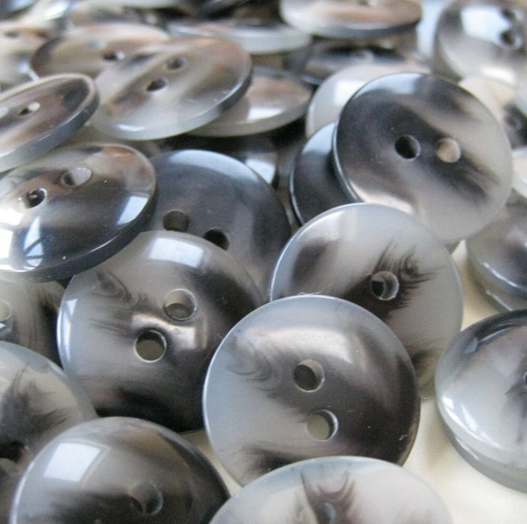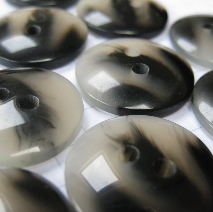 100 smooth plastic buttons marbled in black and greywhite.