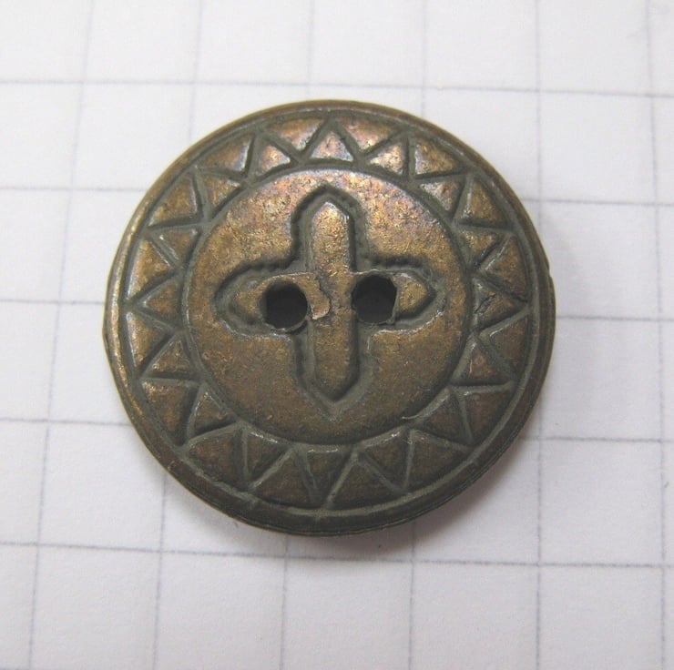 10 decorative copper buttons with smooth reverse and primitive patterned face.