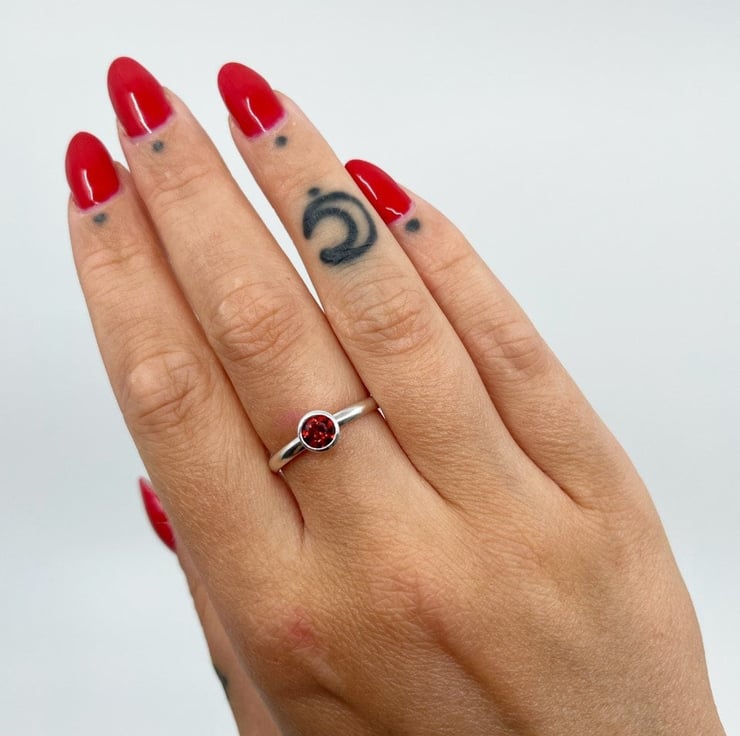 Sterling silver band with a peridot amethyst garnet citrine faceted gemstone.