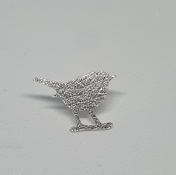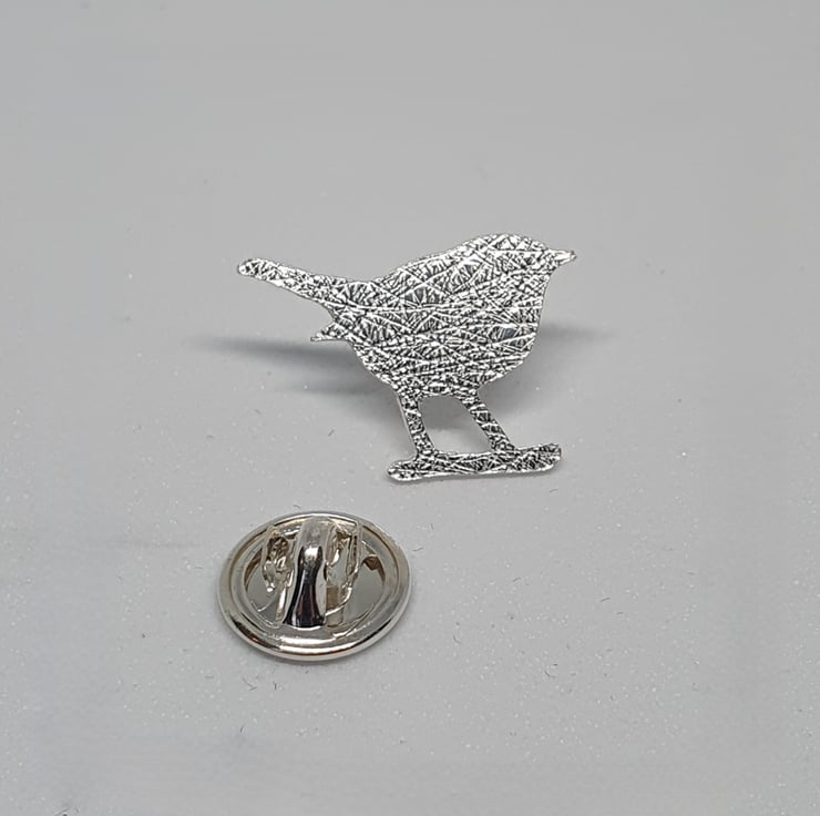 Handcrafted in a small Sheffield studio, this sterling silver brooch or tie pin features a hand-pierced bird. The piece is delicately textured to create a subtle, varied finish. The bird measures 1.8 cm in height and 2.0 cm in width and is secured with a sterling silver butterfly catch. The pin is 1cm long.