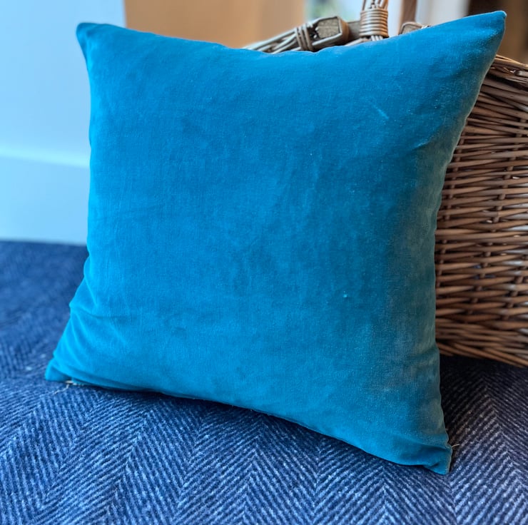 The cover measures 15” square, perfect for a 16” or 40cm feather filler. It fastens with a zip in the bottom seam.