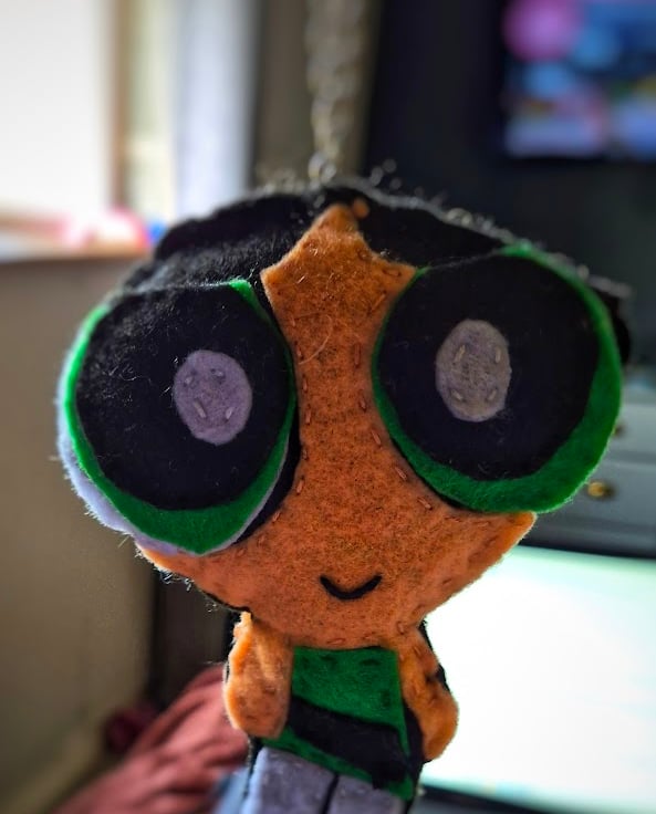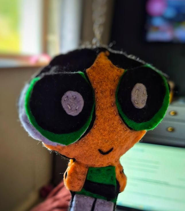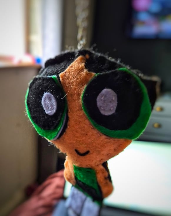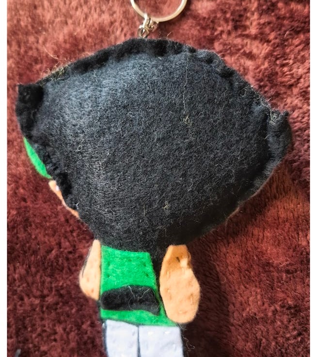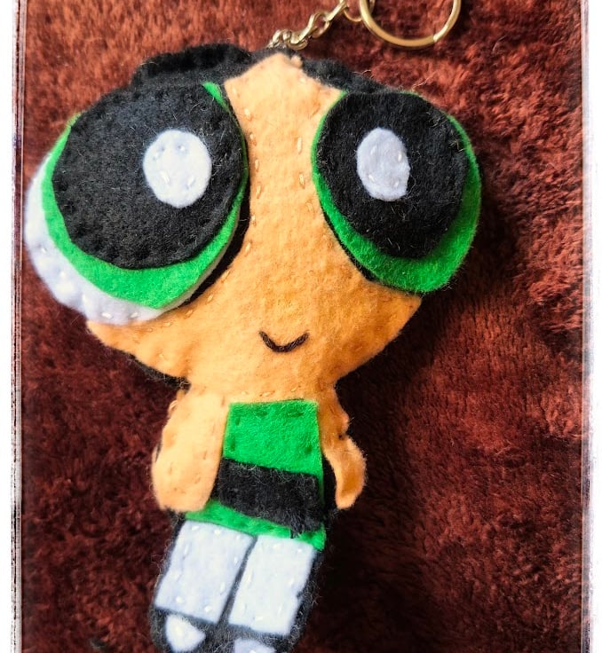 This handmade keyring features a felt character inspired by retro animated cartoons, carefully cut, stitched, and assembled by hand. Made using layers of felt and simple stitched detailing, the design has a charming, slightly nostalgic look with bold colours and an instantly recognisable silhouette.