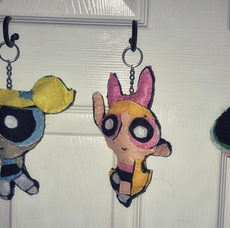 The character is finished front and back with felt detailing and attached to a metal keyring chain, making it ideal for use as a keyring, bag charm, or decorative hanging. Lightweight but sturdy, it adds a fun pop of colour and personality wherever it’s displayed.