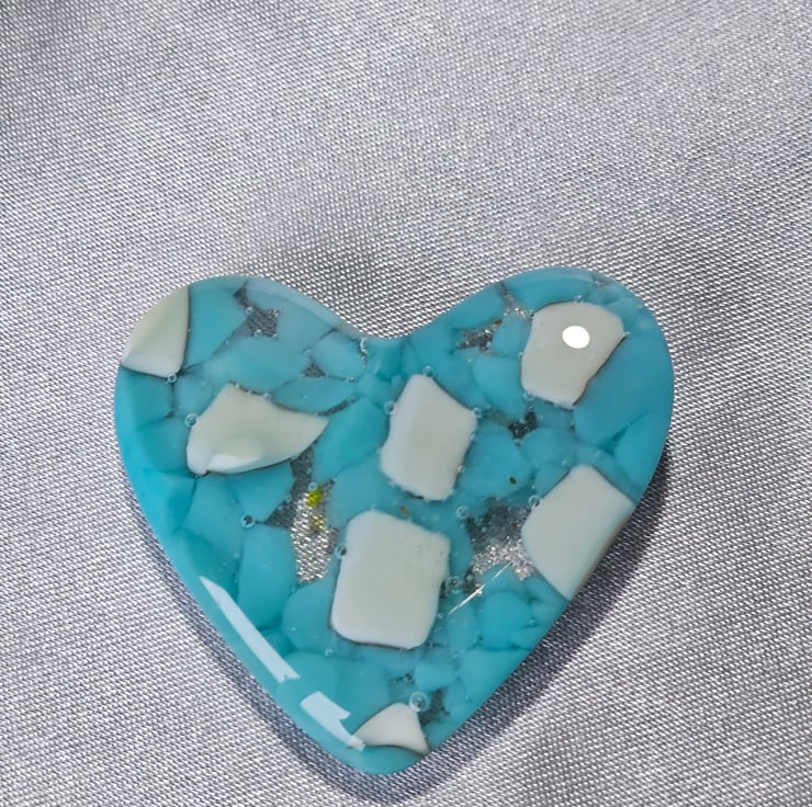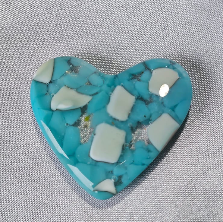 A perfect small gift to show someone you care for them. Or beautiful to keep or yourself. Many people find comfort in having an item to handle in their pocket. Hand cut and kiln fused, a unique item. Very tactile lightly textured underneath and glossy smooth on top. Will arrive wrapped in tissue and in a plain white box tied with ribbon. It can be posted directly to the gift recipient with a printed message of your choice. Approximately 5cm/2" at the widest point. The gift box is 6cm/2.5" square. Please note outer packaging may be recycled.