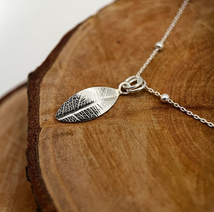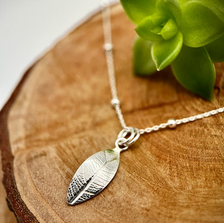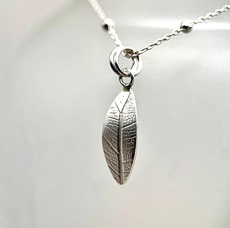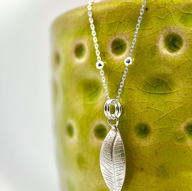 This sterling silver single leaf print pendant is beautiful in its simplicity, with its hand sawn leaf shape, textured with a delicate skeleton leaf, pressed through a rolling mill, leaving it’s intricate detailed impression & formed with a curve using a doming block, before being polished. The pendant hangs from a gorgeous sterling silver Satallite chain available in 40cm (16”) or 45cm (18”) please specify when ordering. This pendant is delicate and unique as every one is made individually each print will be slightly different, this is the beauty of handmade. Perfect for everyday wear or an evening out and can be matched with leaf print earrings also available in my leaf print collection.