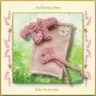 A little purple cardigan, decorated with two tiny buttons, made specially to fit the Pip Squeaks.