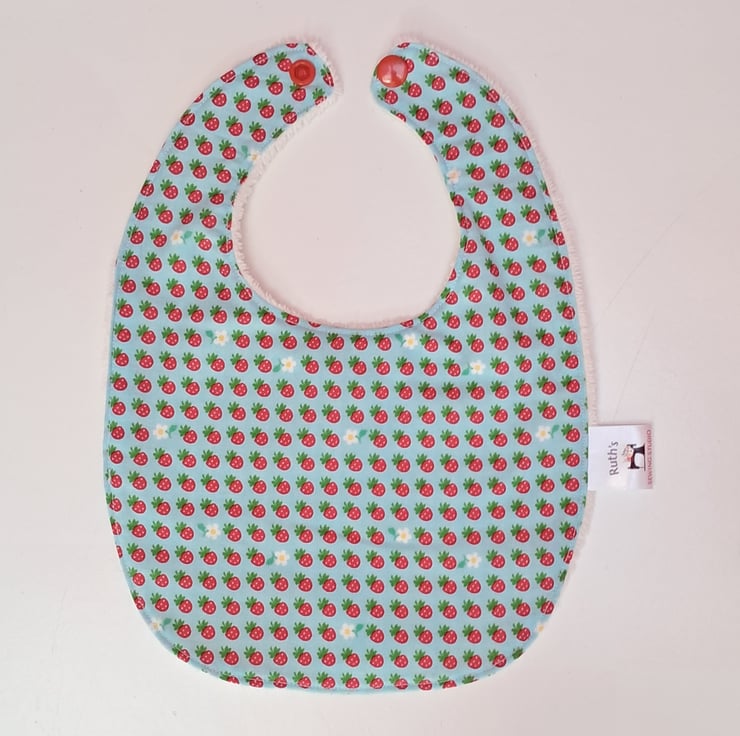 The bib should fit from newborn to 3 months. Teething toy suitable up to toddler age. All sent gift wrapped in tissue paper. Fabric and care instructions included with the set.
