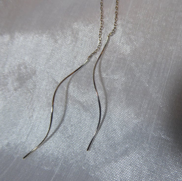 These unusual and unique earrings feature a long spiral that threads through the piercing and can be worn in a variety of ways. They are also very comfortable to wear.