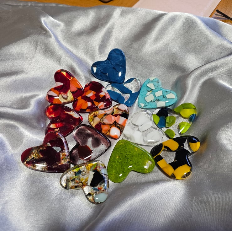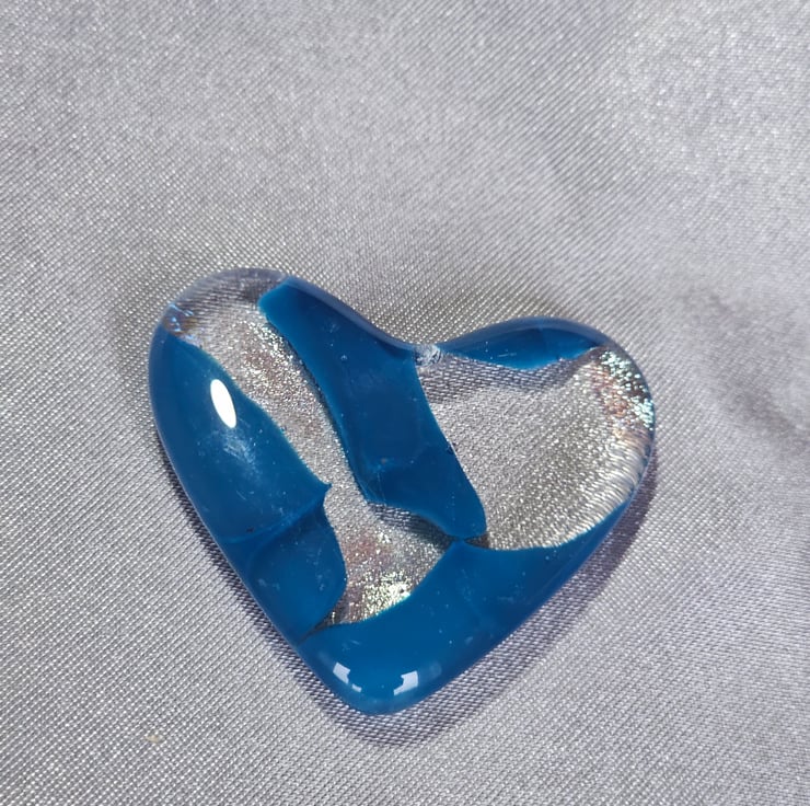 A perfect small gift to show someone you care for them. Or beautiful to keep or yourself. Many people find comfort in having an item to handle in their pocket. Hand cut and kiln fused, a unique item. Very tactile lightly textured underneath and glossy smooth on top. Will arrive wrapped in tissue and in a plain white box tied with ribbon. It can be posted directly to the gift recipient with a printed message of your choice. Approximately 5cm/2" at the widest point. The gift box is 6cm/2.5" square. Please note outer packaging may be recycled.