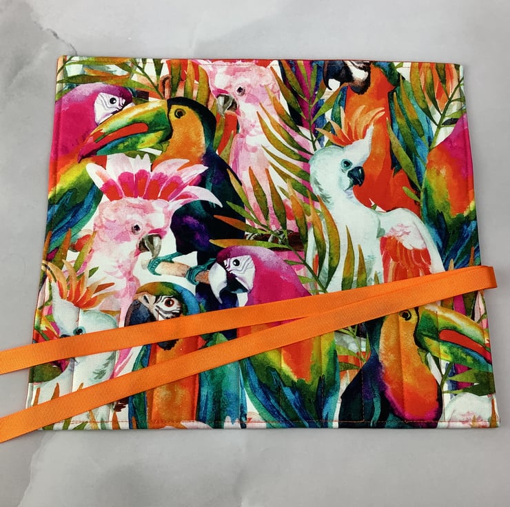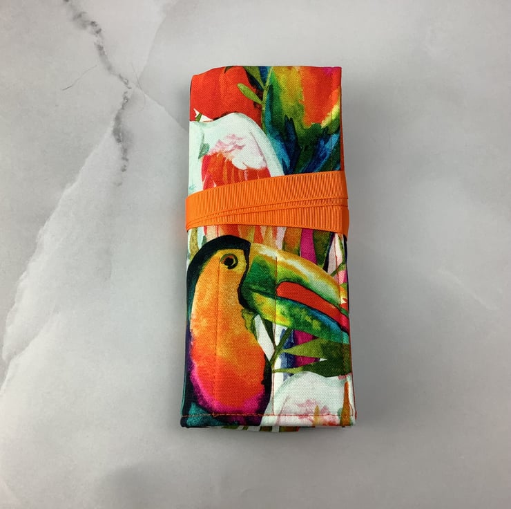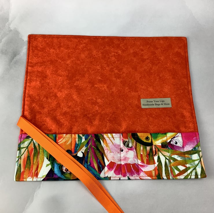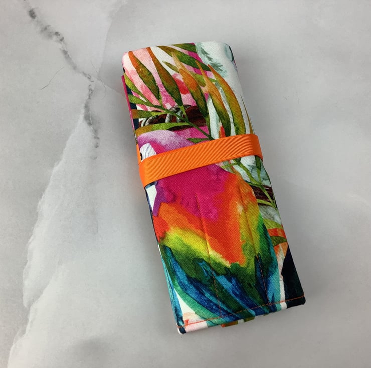 Each unique tool roll is individually made by me in my relaxing and tranquil little West Sussex garden studio so the pattern placement may vary slightly.