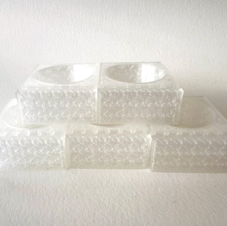 Pack of five frosted clear display stands to fit a 10cm fused glass circle with a holder for a battery powered tea light behind, would also work well for mosaic, painted glass or stained glass pieces.