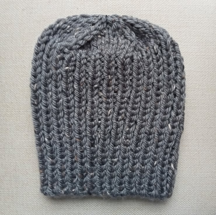 To fit: Small (Medium: Large: X Large). Circumference: 41 (50: 61: 70) cm or 16 (20: 24: 28) inches. Length: 20 (23: 25: 28) cm or 8 (9: 10: 11) inches. It is knitted in super chunky yarn using 10 mm knitting needles. It is knit flat and seamed.