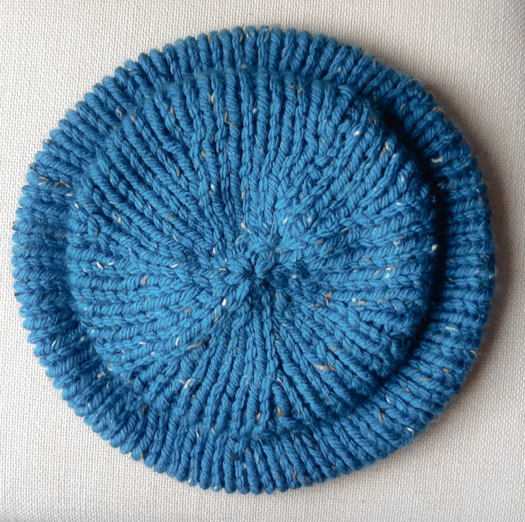 To fit age: 1-3 (4-6: 7-9: 10-12: adult). Circumference: 46 (46: 50: 54: 57) cm or 18,25 (18,25: 19.75: 21.5: 22.5) inches. It is knitted in super chunky yarn using 9 mm and 10 mm knitting needles. It is knit flat and seamed or knit in the round.