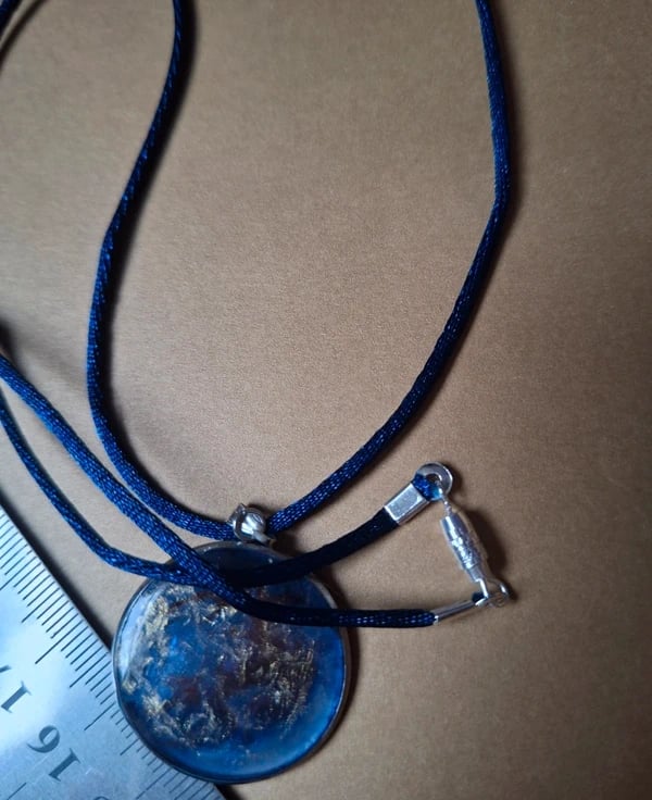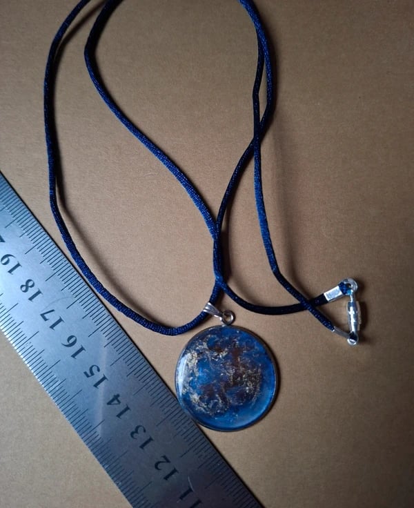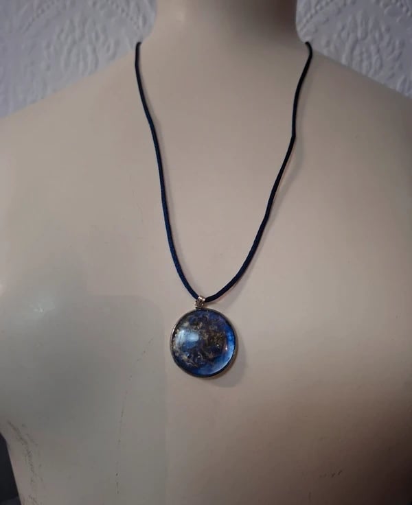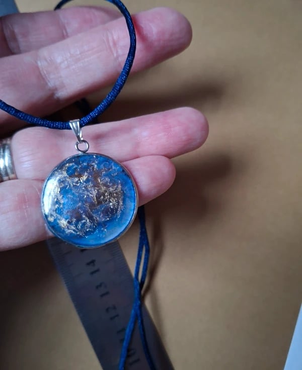 Stainless Steel round Pendant blue and gold set in Resin Hand Made