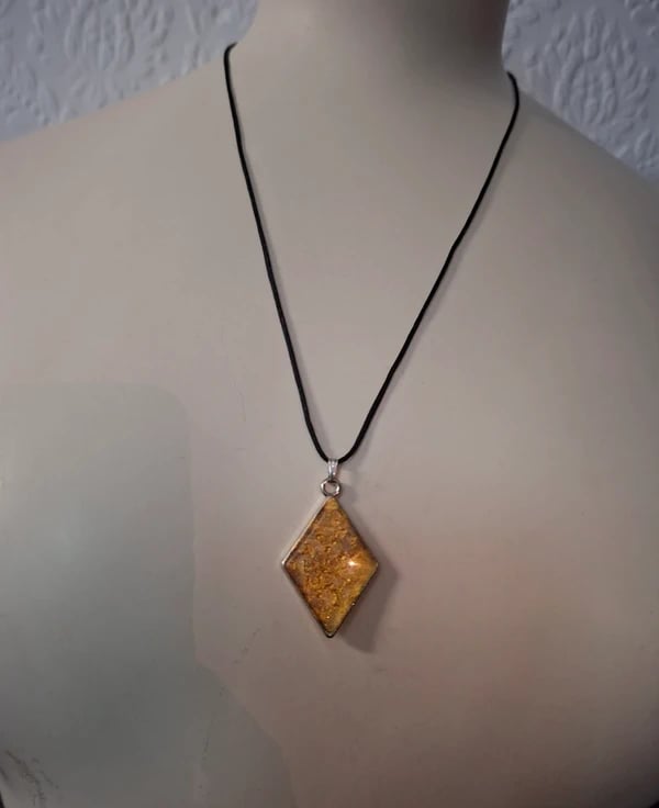 Gold Metallic Diamond Shape Pendant Resin Hand Made