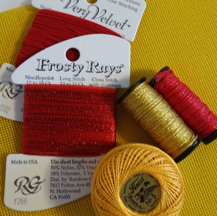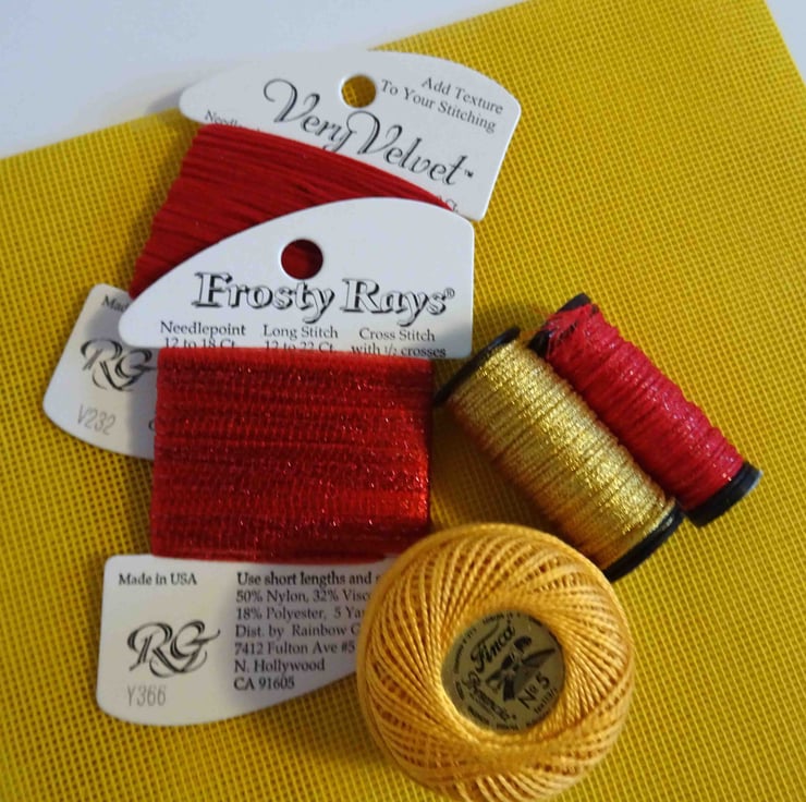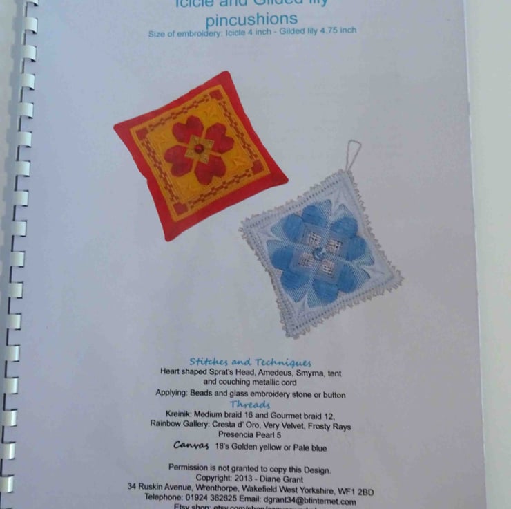 KIT for my unique canvas work GUILDED LILY PINCUSHION. There is everything you need to complete the embroidery (it does not included the fabric for the back and the stuffing. This would increase the cost and you will probably already have these.)