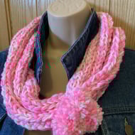 Individual loops of knit make this easy to pop on and go. No wrapping around the neck, trailing ends to be mindful of. Wear with the bridge at the front or off to the side for a few different looks.