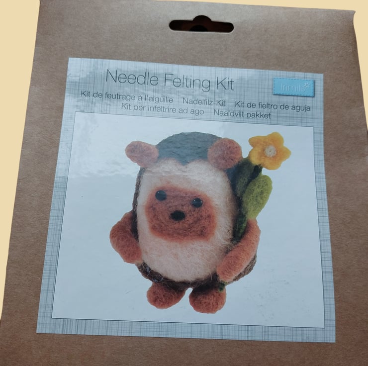 Kit includes instructions, felting needle, wool, shapes for felting, felt pieces, eyes. You will need scissors. Finished size 7 cm x 6 cm.