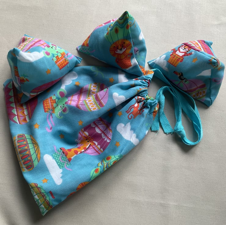 BALLOON SAFARI 3 LITTLE BEAN BAGS RICE FILLED THROWING OR JUGGLING GAME & BAG