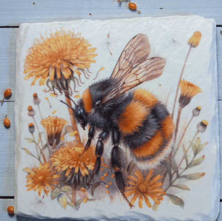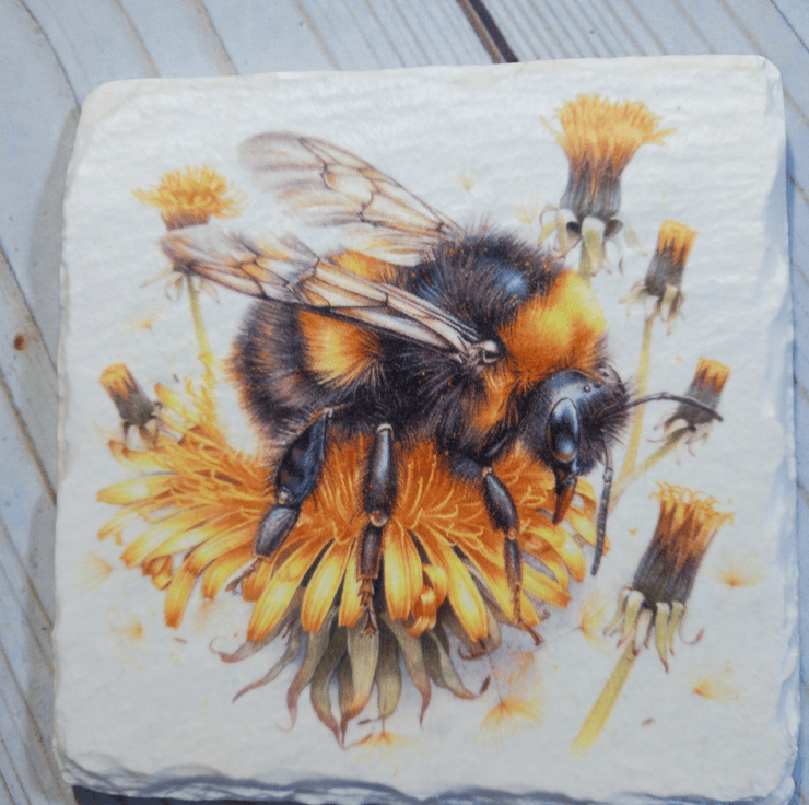 This 2 piece slate coaster set has been hand painted and decoupaged with beautiful Big Bees.