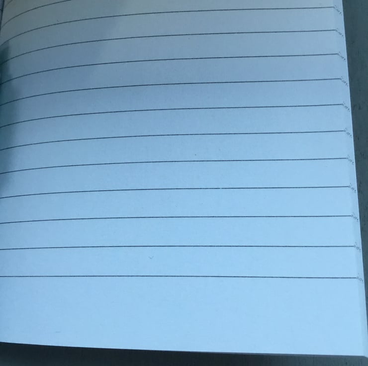 This Notebook is 6 by 4 inches size, with many ruled pages to write in with the matching turquoise green pen, that writes in black ink.