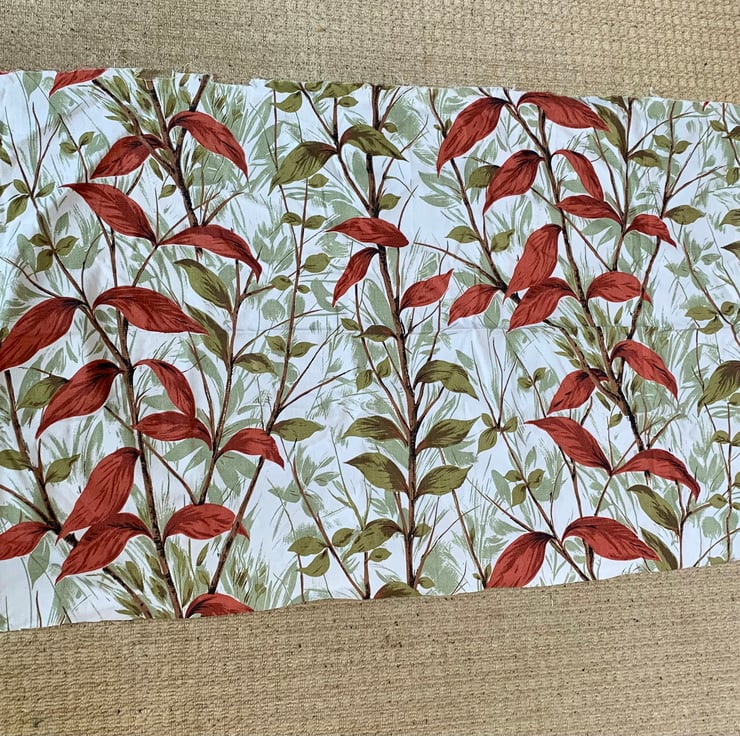 Retro Mid Century Red Green Leaf 50s 60s Vintage Fabric DIY Cushion