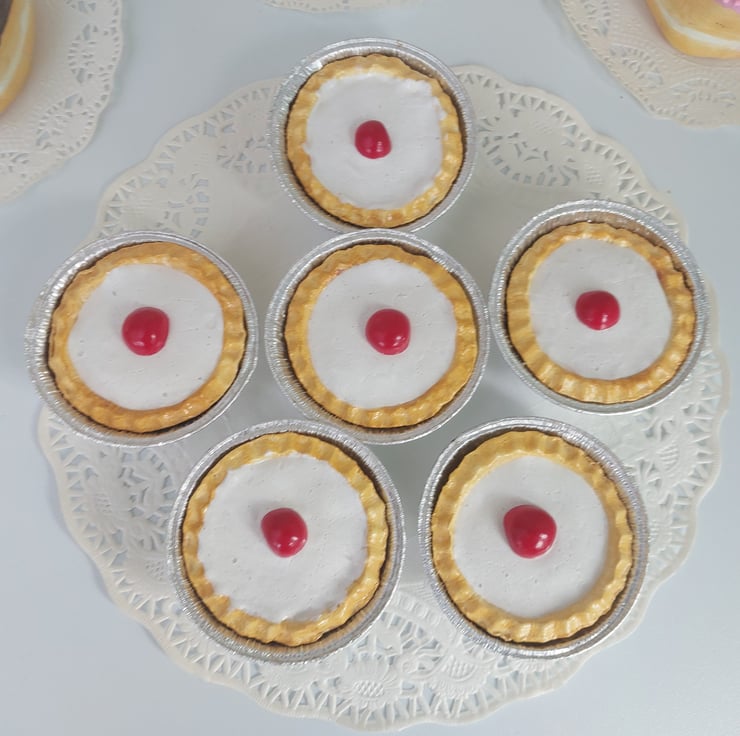 Faux Fake Bake 6 Cherry Bakeweel Tarts Cakes Party Prop, Retail Shop Prop, T.V.