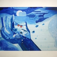 A5 print of my watercolour painting inspired by a scene in Steven Universe tv show- I'm naming 'being human'. Also available in A4-select choose options.