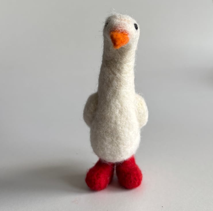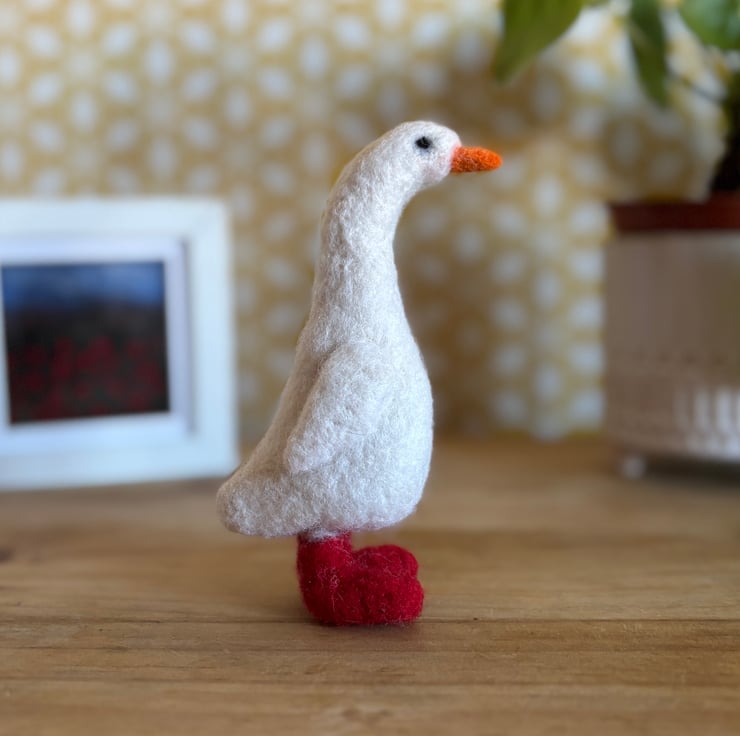 Handmade, needlefelted wool duck which is approximately 14cm tall and 7cm wide and perfect for any display.