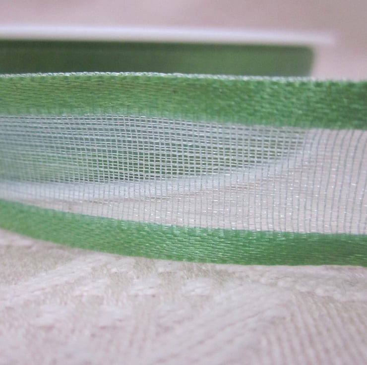 15mm (0.6") wide leaf green organza ribbon with satin-weave edges