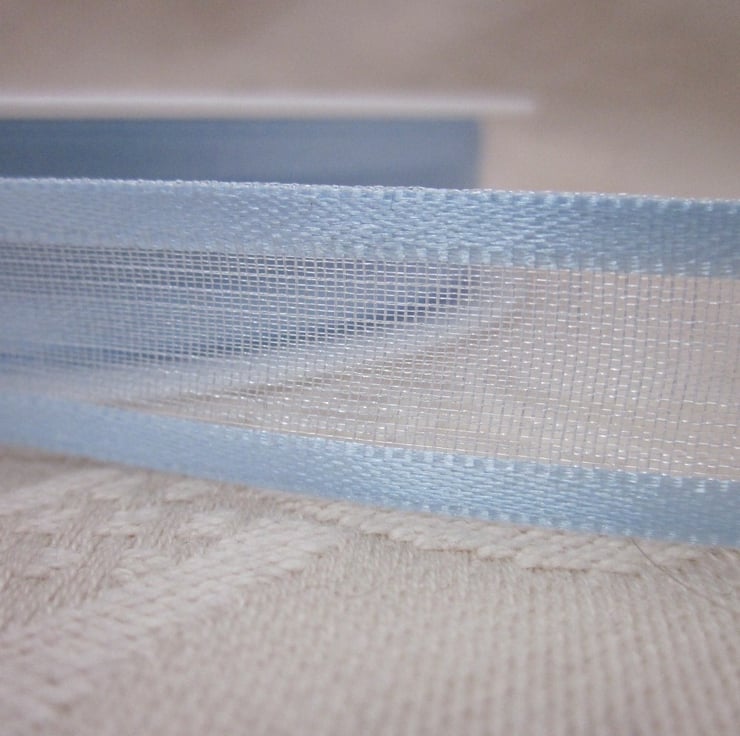 15mm (0.6") wide sky blue organza ribbon with satin-weave edges