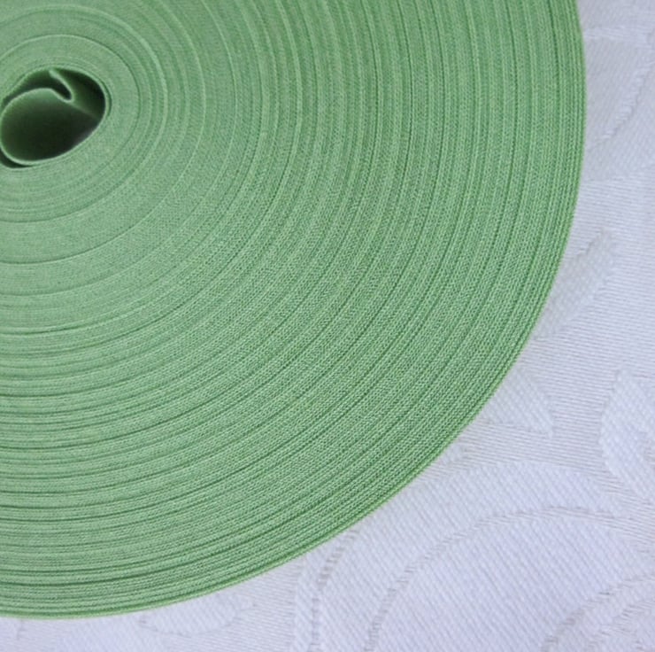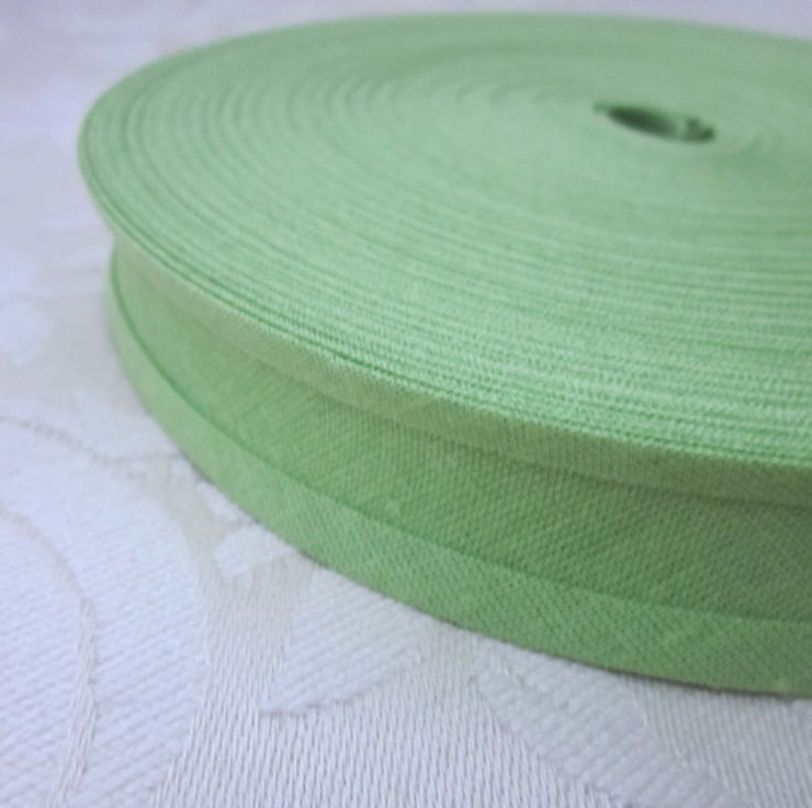Full, unused, 25m roll of light olive green polycotton bias binding.