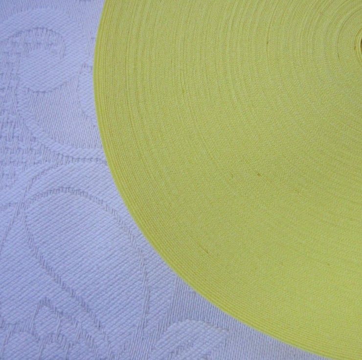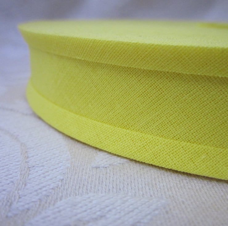 Full, unused, 25m roll of bright yellow polycotton bias binding.
