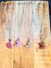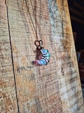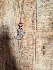 Each moon is individually wrapped by hand, making every necklace one of a kind. Finished with a coordinating chain, this piece is lightweight and comfortable to wear, perfect for everyday outfits or as a unique handmade gift.