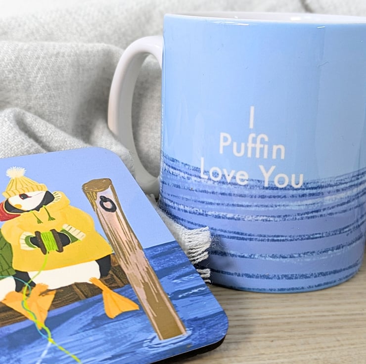 My puffin cards are very popular so I though I woud spread the love even further by adding puffin love on mugs.