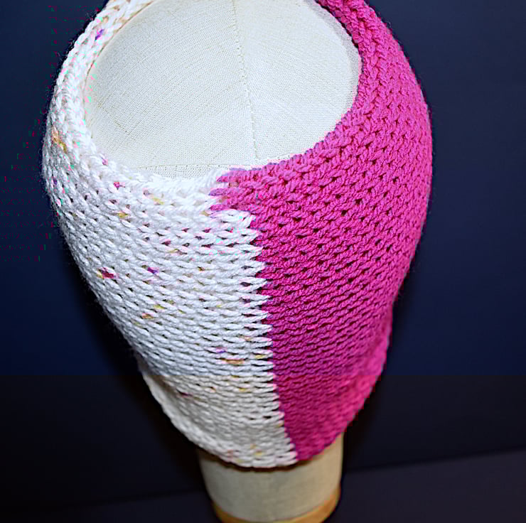 A bright hot pink is paired with a pink and peach flecked pale peach wool.