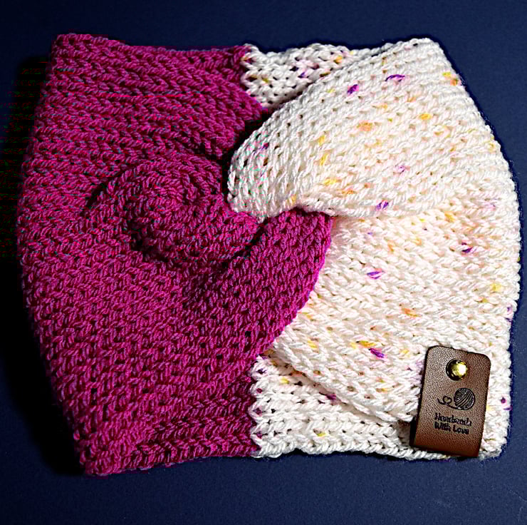 Handcrafted Twisted Head Wrap Ear Warmer 2 Tone Pink