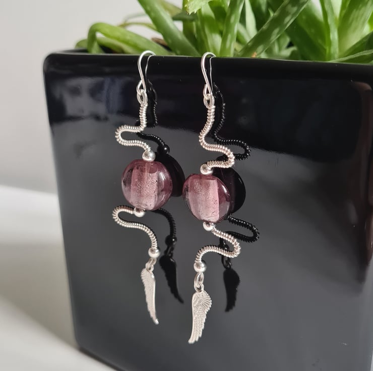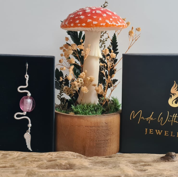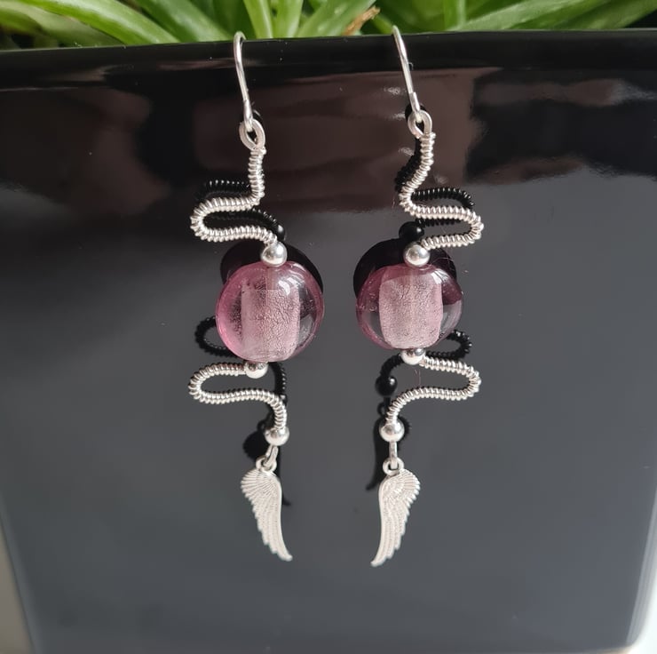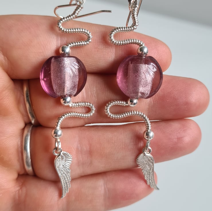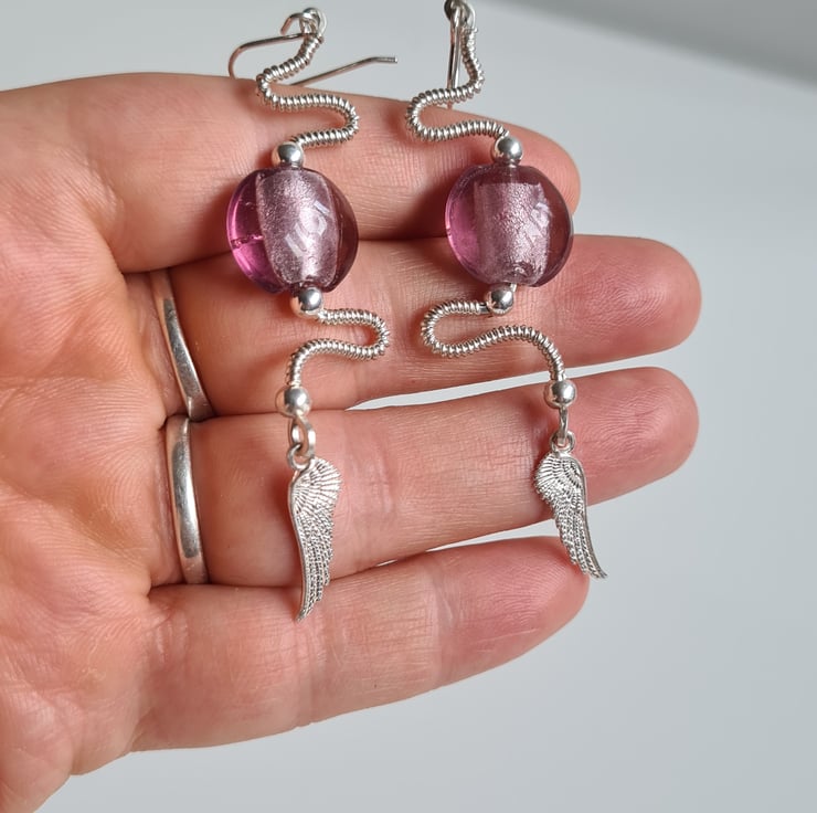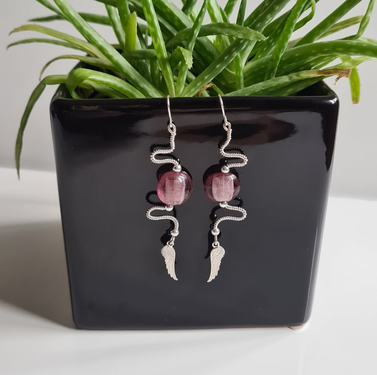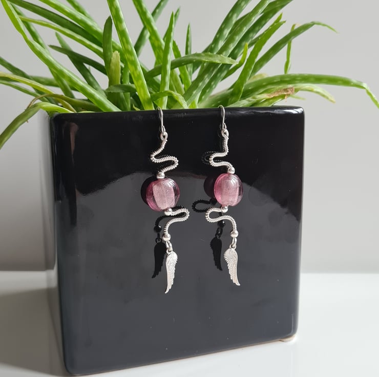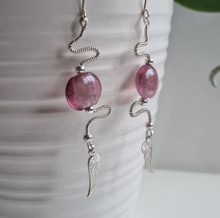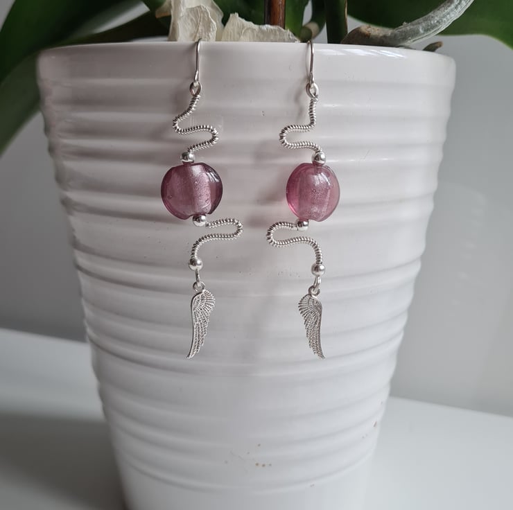 I have handcrafted these stunning large statement earrings using 925 Silver and these gorgeous pink glass beads. The other beads in the design are sterling silver and the earrings are finished off with beautiful top quality sterling silver angel wings. These are a one of a kind design and they really do make a statement!