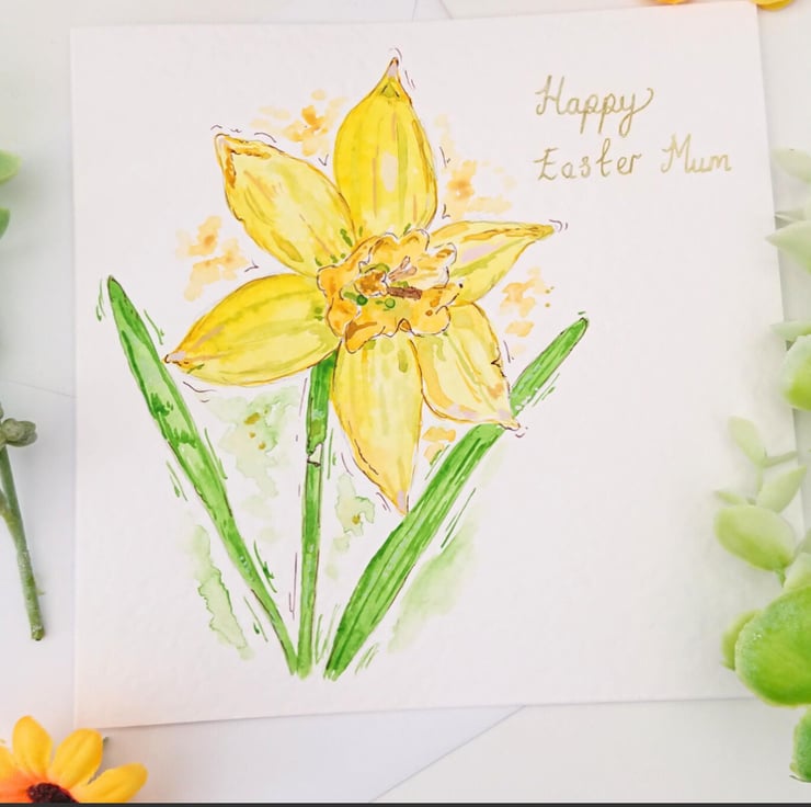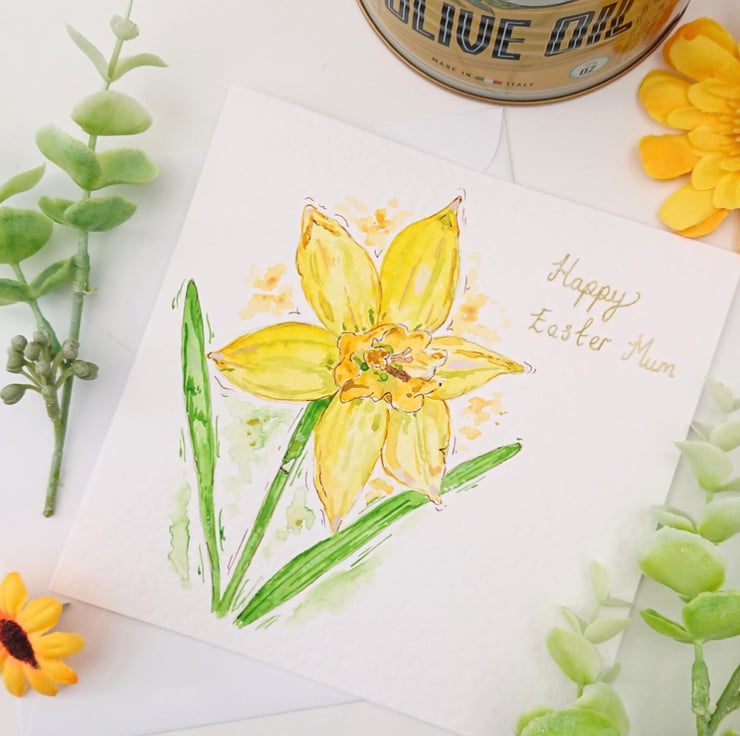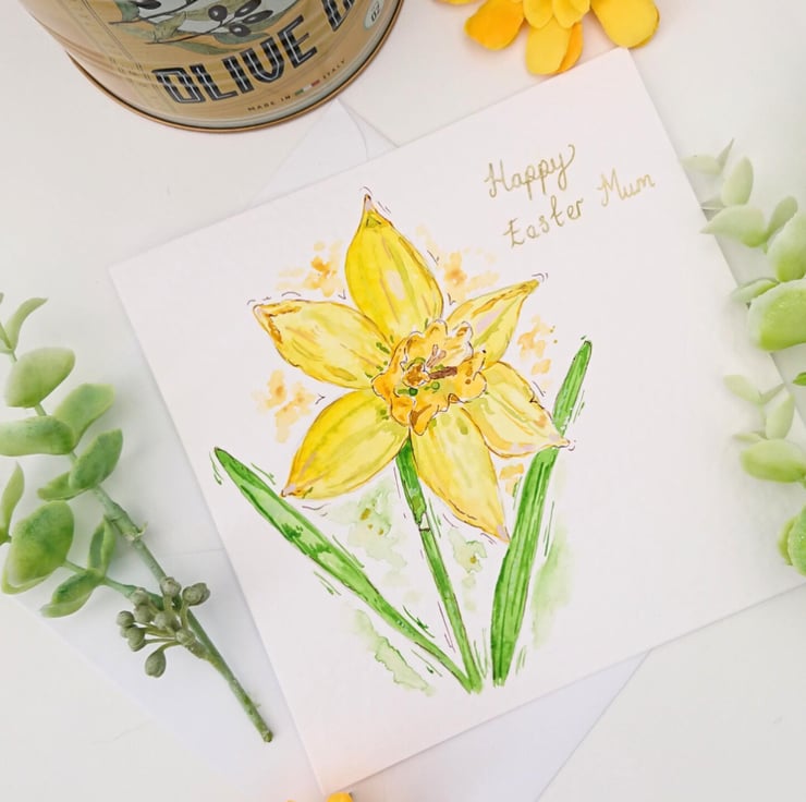 A beautiful hand-painted watercolour Daffodil greetings card. A special and unique card, ideal for Easter or a special birthday for any daffodil lover. It would be lovely to frame afterwards too as a keepsake.