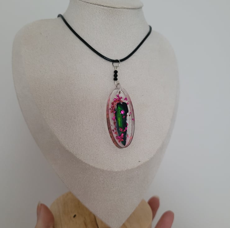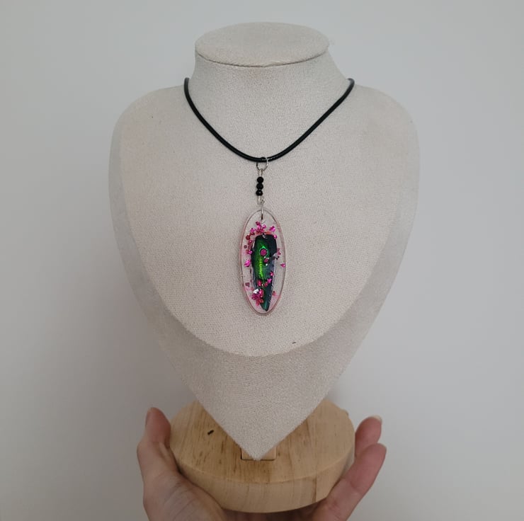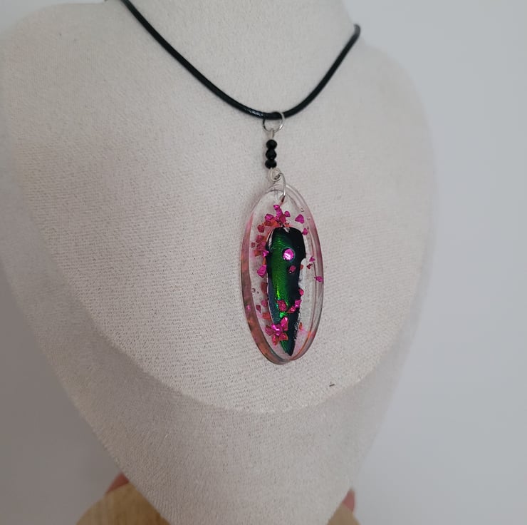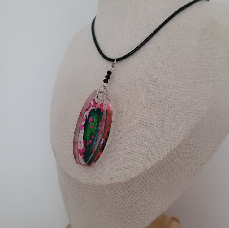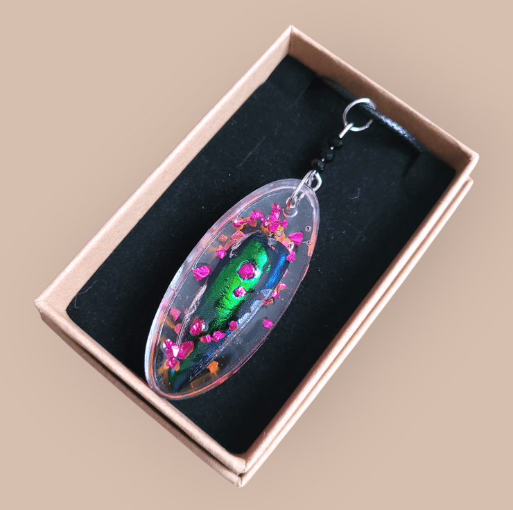Beetle Wing Necklace with Black Wax Cord.