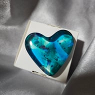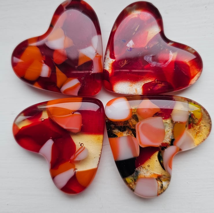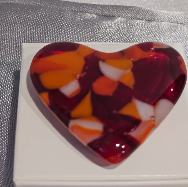 A perfect small gift to show someone you care for them. Or beautiful to keep or yourself. Many people find comfort in having an item to handle in their pocket. Hand cut and kiln fused, a unique item. Very tactile lightly textured underneath and glossy smooth on top. Will arrive wrapped in tissue and in a plain white box tied with ribbon. I am selling 4 in similar colours. It can be posted directly to the gift recipient with a printed message of your choice. Approximately 5cm/2" at the widest point. The gift box is 6cm/2.5" square. Please note outer packaging may be recycled.