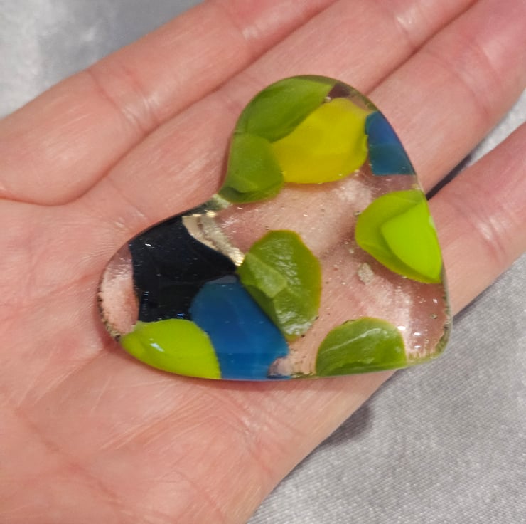 A perfect small gift to show someone you care for them. Or beautiful to keep or yourself. Many people find comfort in having an item to handle in their pocket. Hand cut and kiln fused, a unique item. Very tactile lightly textured underneath and glossy smooth on top. Will arrive wrapped in tissue and in a plain white box tied with ribbon. It can be posted directly to the gift recipient with a printed message of your choice. Approximately 5cm/2" at the widest point. The gift box is 6cm/2.5" square. Please note outer packaging may be recycled.