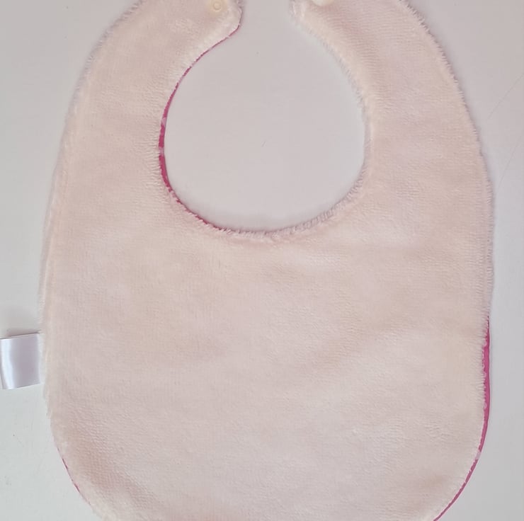Cute baby bib with softest bamboo towelling. The bamboo is highly absorbent with natural antibacterial properties, perfect for a baby's bib. A great gift for any little one. Fits size 3 months to 12 months.