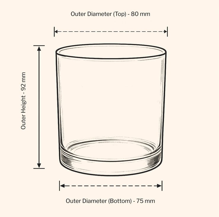 a heavy base and near parallel sides, this 'whisky style' glass is amongst the most popular candle glasses in use today.