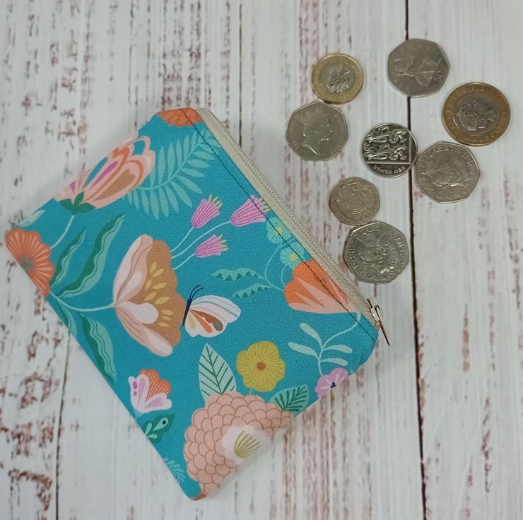 Beautiful flowers purse perfect for coins, bank cards and paper money or for storing small items.